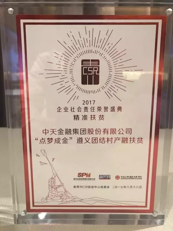 △ 中天金融集团荣获“2017中国精准扶贫责任企业”殊荣
